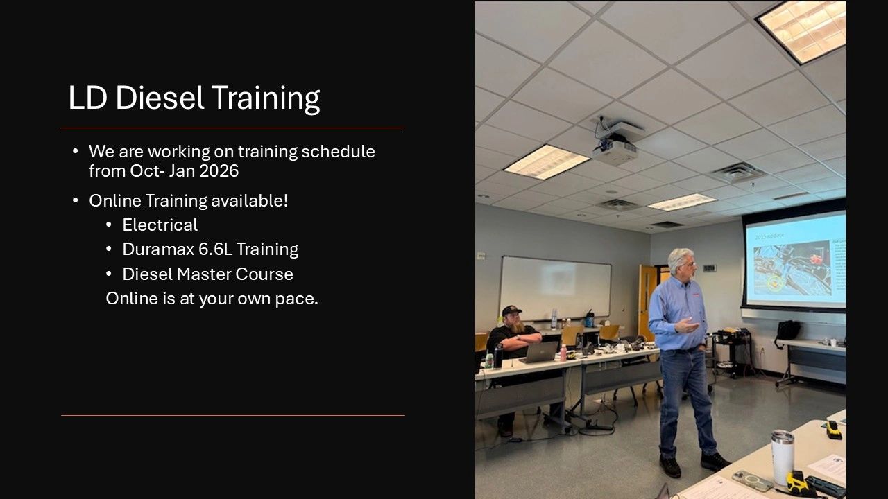 Classroom and hands on training on Duramax Diesel 6.6L for more info Click here for info and to register